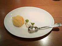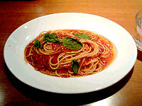 その後は妻のお買物にお付き合い・・・だけどウィンドウショッピングで終わり、な〜んか、私の為に付き合せちゃった感じ・・・。悪いのでお昼は私の財布から・・・。右の写真「フレッシュトマトとバジルのパスタ」「みかんのシャーベット」