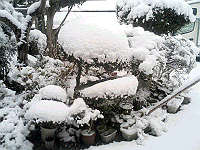 今朝、起きたら庭が一面真っ白・・・。予報通り雪です。
