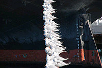 「氷川丸」を固定している鎖にカモメが休憩中?
