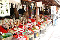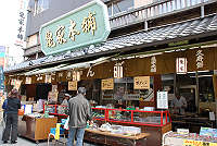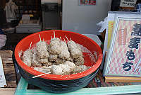 この参道には、くずもち、草だんごのお店が多いです。