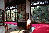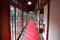 廊下を傷つけないようにだけど、赤いじゅうたんだけ和洋折衷になるね。