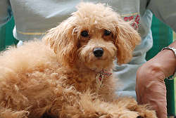心配していた散歩でのトイレも普通にするようになったので一安心。 ご近所にトイプー発見。 お友達も出来ました。(笑)