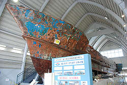 生々しい弾痕の跡や遺留品が展示されてます。 |