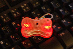 ワンコの夜の散歩のお供です。 2つのLEDが左右交互に点滅、両方同時に点滅、常時点灯の三種類がひとつのスイッチを押すことで切り替えが出来ます。 もちろん電池(LR41×2個)付き。 通常これに似た製品は500円から700円はするのでメチャ安いと思います。