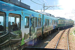 | こんなカラフルな車両も走っているなんて・・・やはり観光電車ですね。 |