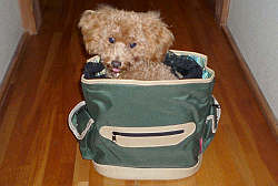 我が家のワンコ(3.4kg)には狭いかな?と思ったけど意外と中は広い。 移動中にワンコを抱いてる感覚でのことを考えると、ワンコとバックのクリアランスは適度に少ない方がワンコもあっちこっち中で動かないので疲れないかな?