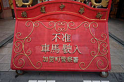 | 流石、中華街。 車止めまで中国語。 不准は「〜してはならない」ってことだから、車馬進入禁止?だろうね。 |