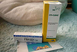 「オティクレンズ」 耳の洗浄剤 120ml と「ドルバロン」 皮膚病・外耳炎薬 7.5ml