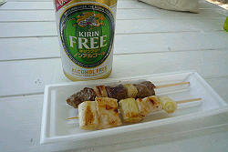 | ノンアルコールとワニの串焼き、ダチョウの串焼き。 |