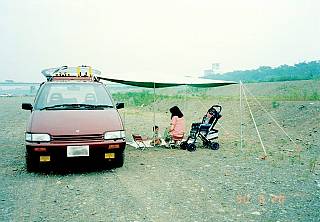 近くの川原で一泊
